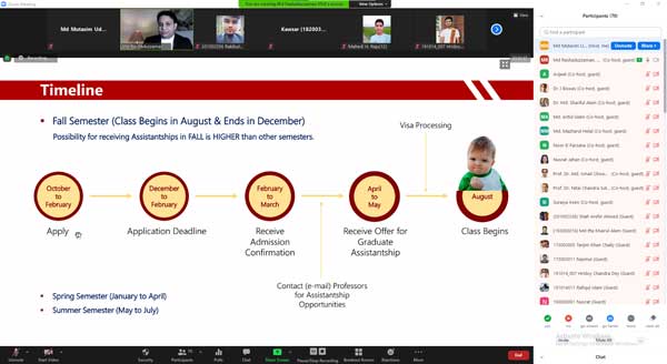 It is our great pleasure to inform you that the Department of Textile Engineering successfully organized a webinar titled Study Textiles and Fashion in USA: Process and Prep for Admission and Graduate Assistantship on 20.02.21. Around 80 students participated in the webinar.